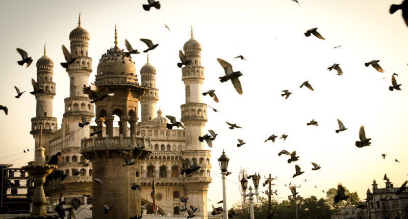 9. Mecca Masjid: A magnificent mosque displaying exemplary Islamic architecture, attracting devotees and tourists alike for its grandeur and historical significance.